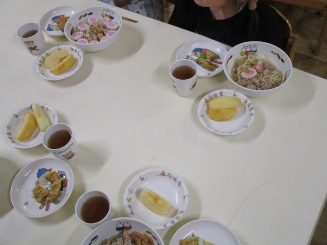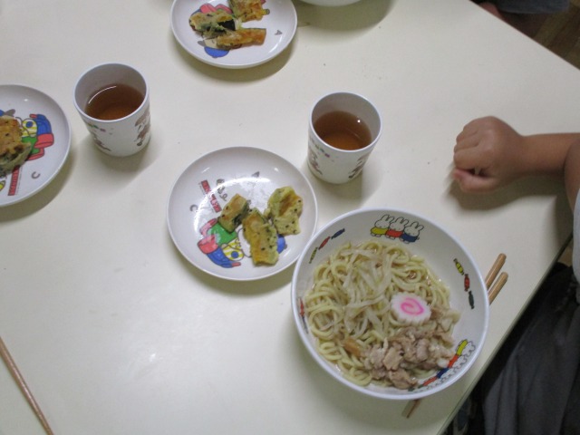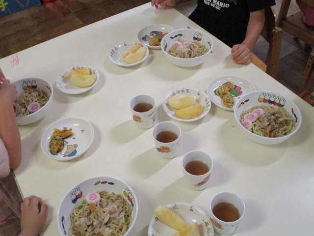 4・5歳児が食育活動として、給食のラーメンの具材トッピングに取り組みました。