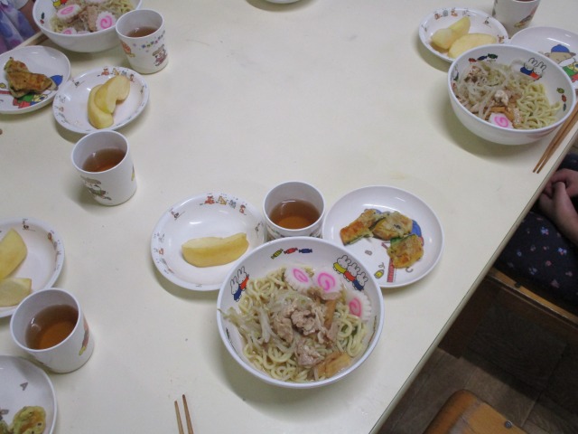 4・5歳児が食育活動として、給食のラーメンの具材トッピングに取り組みました。